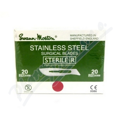 Skalpelová čepelka sterilní Swann Morton je nerezová, velmi kvalitní, ostrá a pevná čepelka. K jejímu používání je potřeba dokoupit držátko č.4.