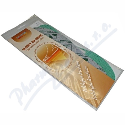 3-vrstvá stélka s antibakteriální úpravou textilu (fa Bayer), aktivního uhlí, protiskluzné mřížky doplněna klenkem a srdíčkem,protipachová s perforací