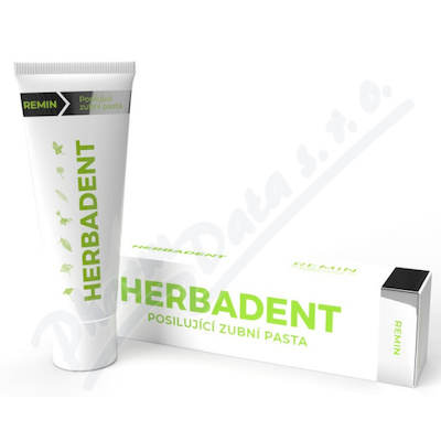 Bylinná zubní pasta HERBADENT REMIN pro přirozeně bílé zuby, silnou sklovinu a zdravé dásně. Patentovaný komplex bioaktivní molekuly hydroxyapatitu s aktivním vápníkem posiluje sklovinu a tak přispívá k její odolnosti a přirozeně bílé barvě.