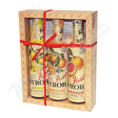 Dárkové balení citrusových Kitl Syrobů. Poctivé sirupy pro přípravu tradičních domácích limonád. Kitl Syrob Grepový, Citronový a Pomerančový s dužninou jsou vhodné především pro přípravu osvěžujících domácích koktejlů a limonád.