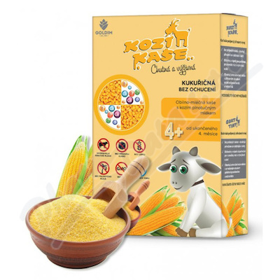 Kukuřičná kaše s plnotučným kozím mlékem v prášku pro výživu kojenců a malých dětí od ukončeného 4. měsíce věku. Bez lepku, vhodné jako první zeleninový příkrm.