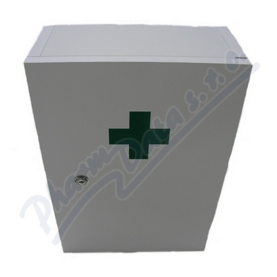 Lékárnička bílá dřevěná nástěnná slouží jako skříňka pro uchovávání zdravotnických prostředků pro první pomoc. Skříňka je opatřena zámkem s klíčem pro větčí bezpečnost. Uvnitř skříňky jsou poličky pro lepší ukládání materiálu.