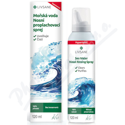 LIVSANE Hypertonický nosní proplachovací sprej s mořskou vodou je dekongescenční roztok určený k čištění nosu, uvolnění dýchacích cest. Zvlhčuje nosní sliznici, proplachuje nosní cesty a udržuje nosní průchodnost.