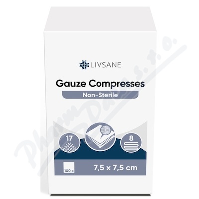 LIVSANE Nesterilní gázové kompresy 7.5x7.5cm 100ks