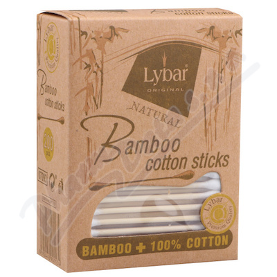 Vatové tyčinky LYBAR Original ze 100% bavlny a bambusu pro denní hygienu. Balení v eko papírové krabičce obsahuje 200ks. Celá tyčinka je z přírodních materiálů a nezatěžuje tak životní prostředí.