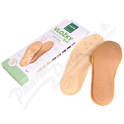 Vložka podepírá podélnou a příčnou klenbu nožní. Podprstová řasa v přední části a měkký polštářek v patě zvyšují komfort chůze.